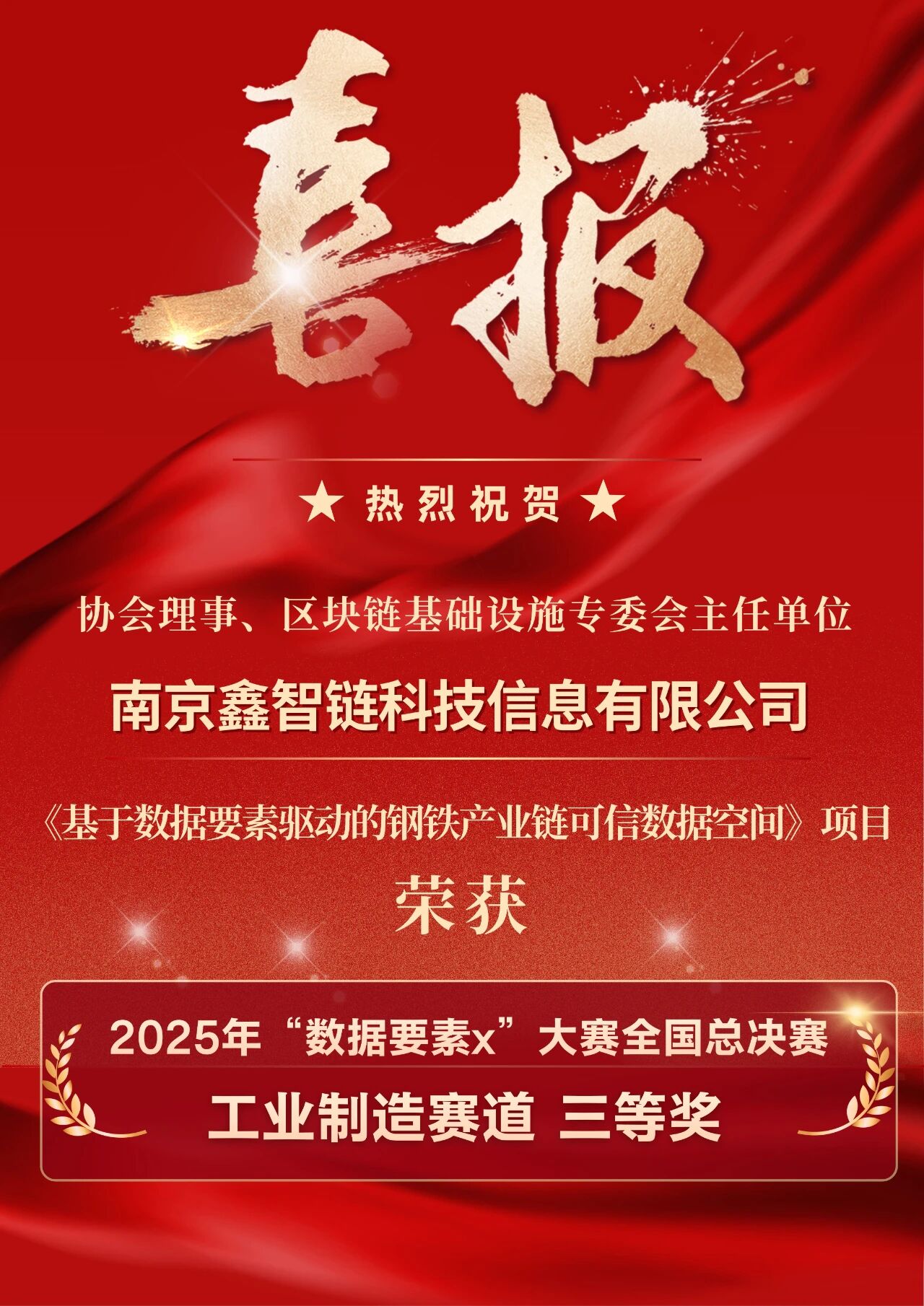 喜报|协会理事、区块链基础设施专委会主任单位南京鑫智链荣获2025年“数据要素×”大赛全国总决赛三等奖