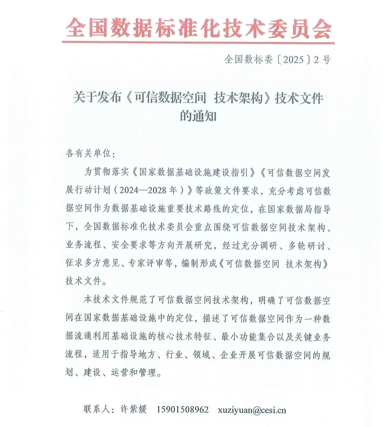 关于发布《可信数据空间 技术架构》技术文件的通知