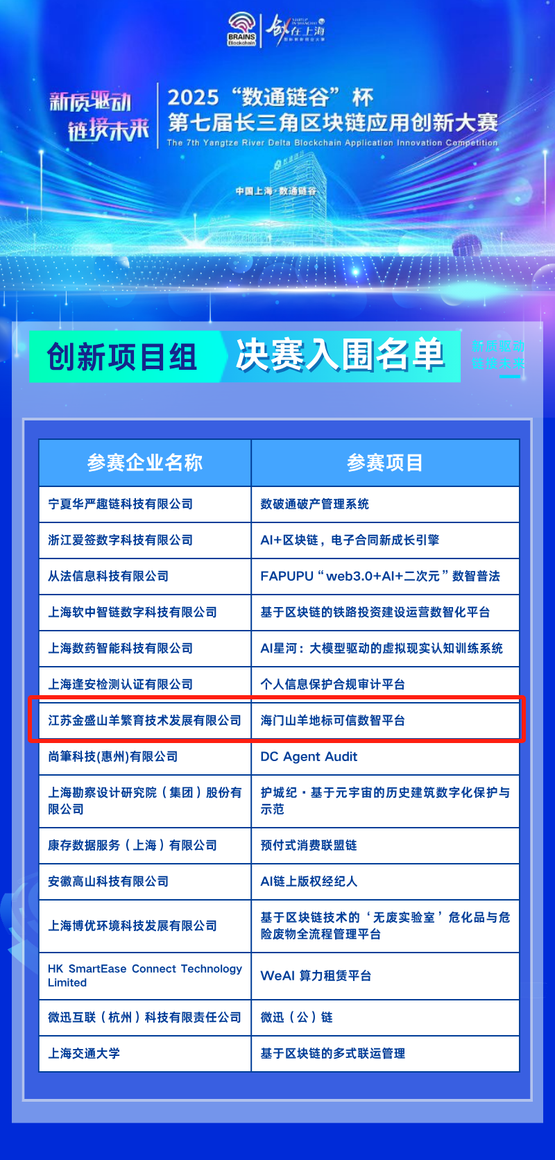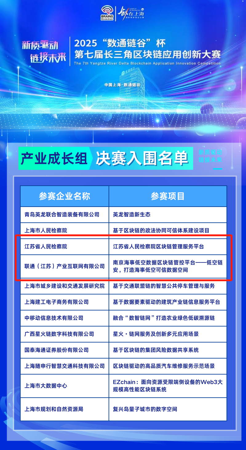 2025“数通链谷”杯第七届长三角区块链应用创新大赛决赛入围名单新鲜出炉!我省共有五个项目入围决赛名单。恭喜晋级团队及个人!
